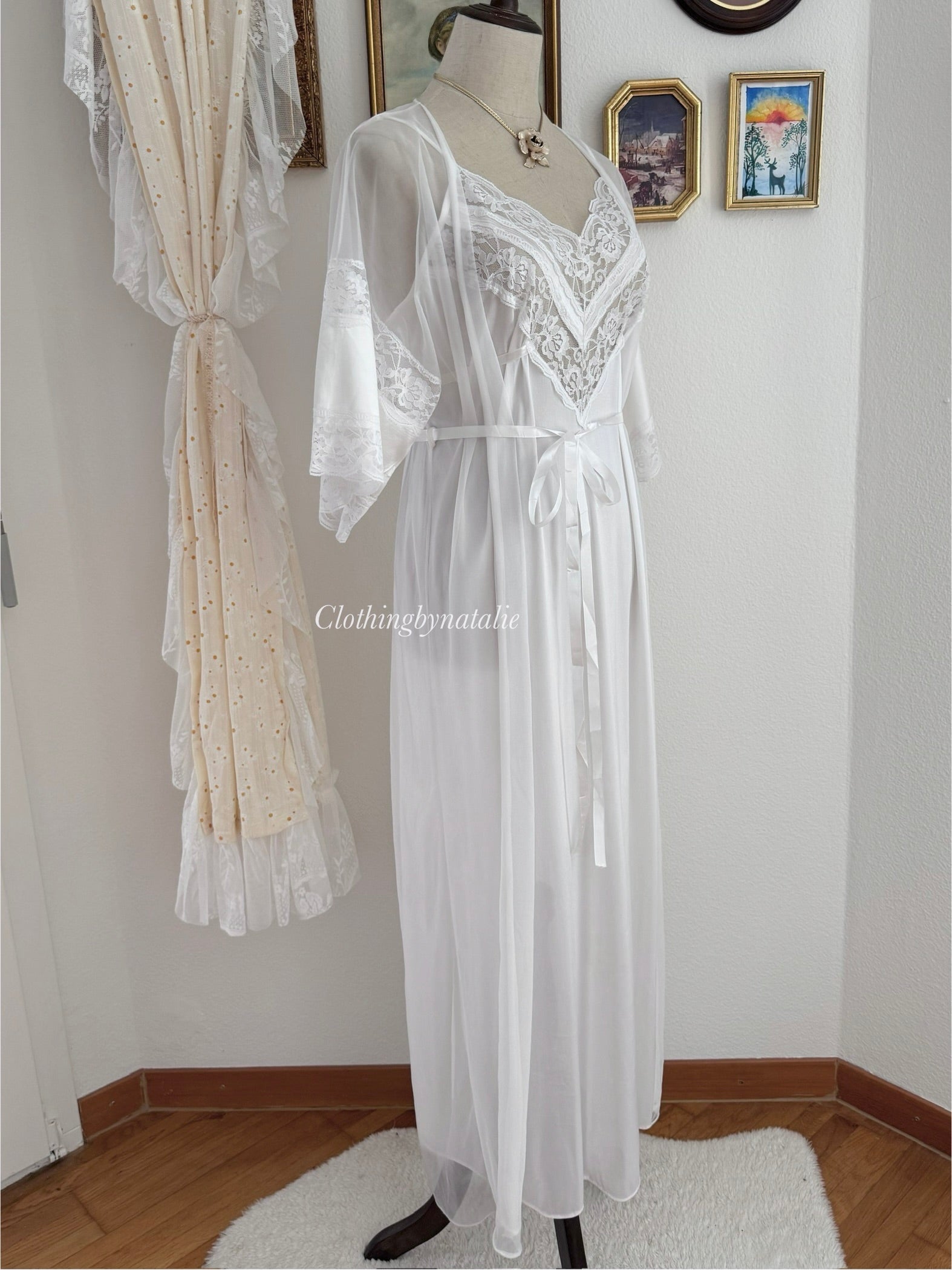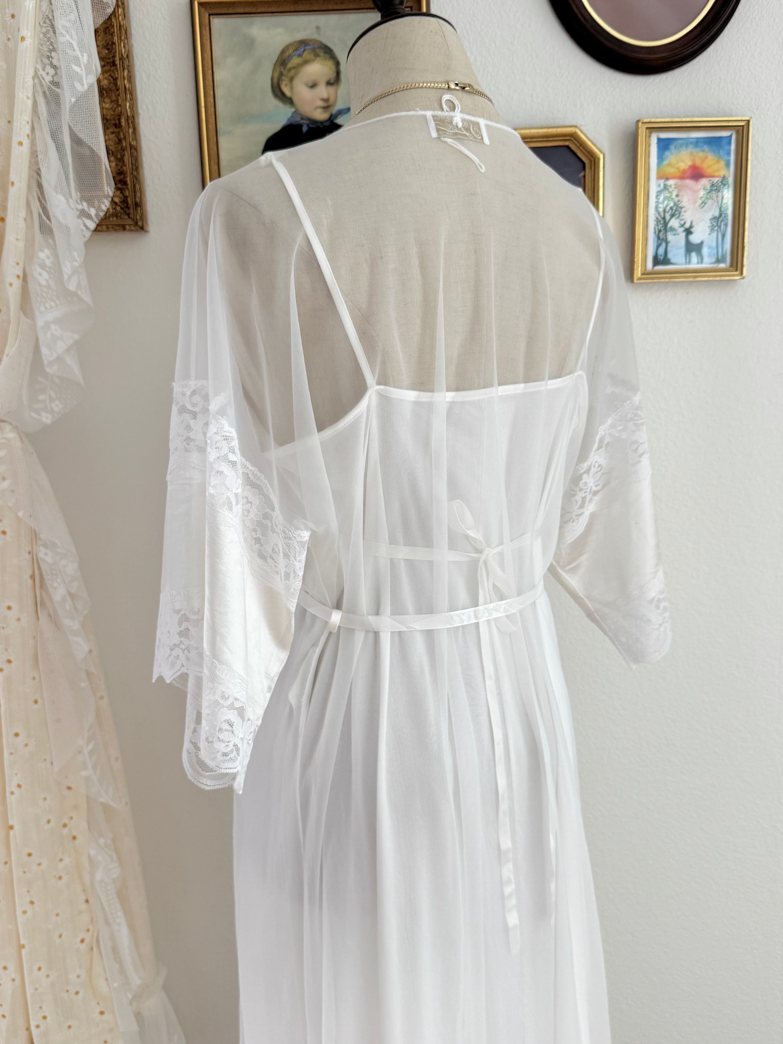 Shannon Lee White Lace Nylon Peignoir size M